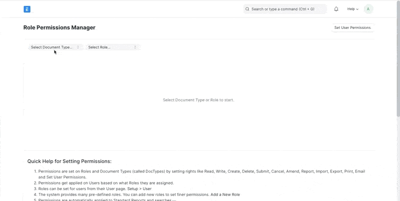 Bước 2: Chuyển đến Trình quản lý quyền của vai trò, lọc bằng cùng một Loại tài liệu (trong ví dụ của chúng tôi là Hóa đơn bán hàng) và chỉnh sửa quyền dựa trên Vai trò