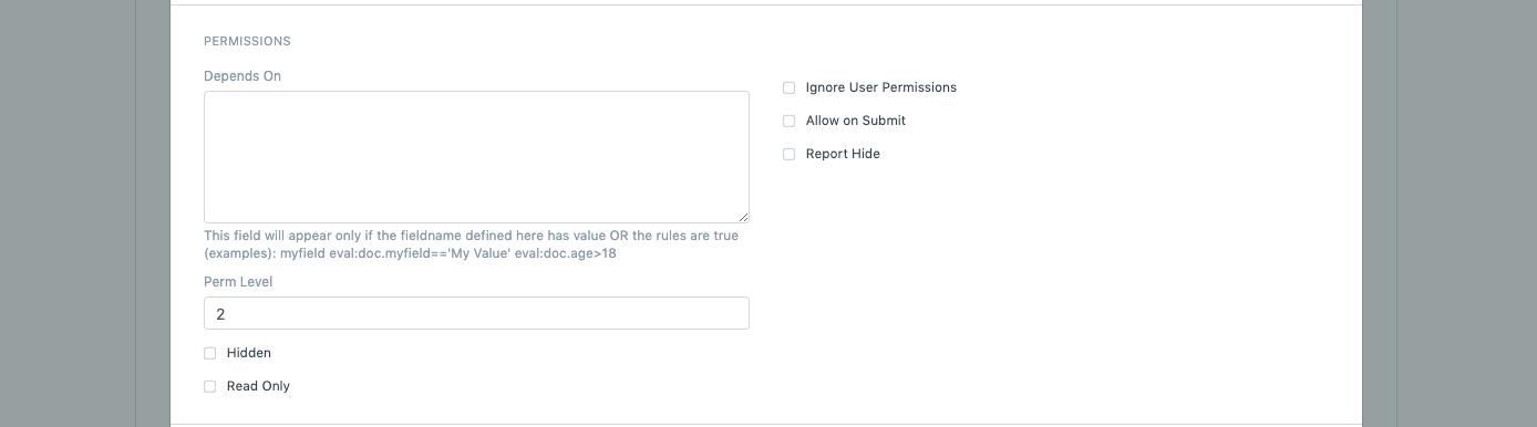 Việc hạn chế trường dựa trên Vai trò có thể được định cấu hình dễ dàng bằng Cấp Perm, được hầu hết các tổ chức yêu cầu
