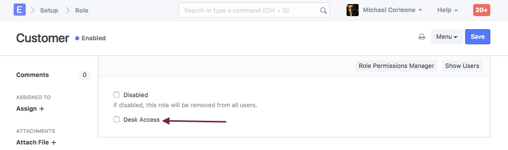 Trong phần Vai trò chính, nếu trường "Quyền truy cập máy tính" được chọn thì Vai trò đó là dành cho Người dùng hệ thống. Nếu trường Truy cập bàn không được chọn thì Vai trò đó là dành cho Người dùng trang web.