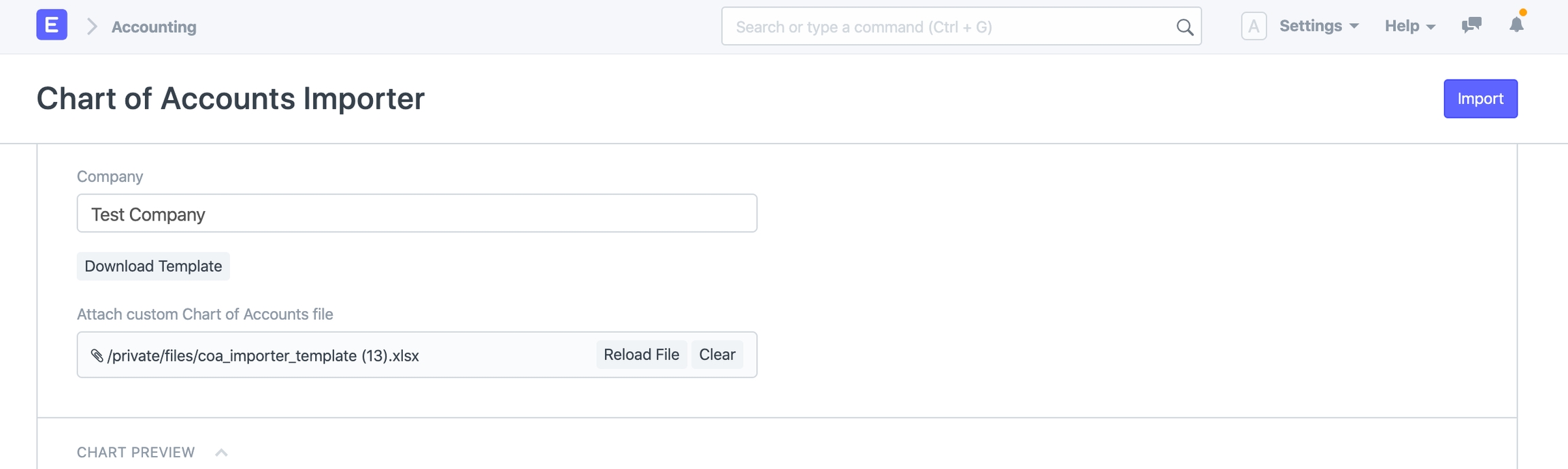 Nhập khẩu COA Sau khi tải mẫu lên, bạn sẽ có thể xem bản xem trước của Hệ thống tài khoản trong phần Xem trước biểu đồ.