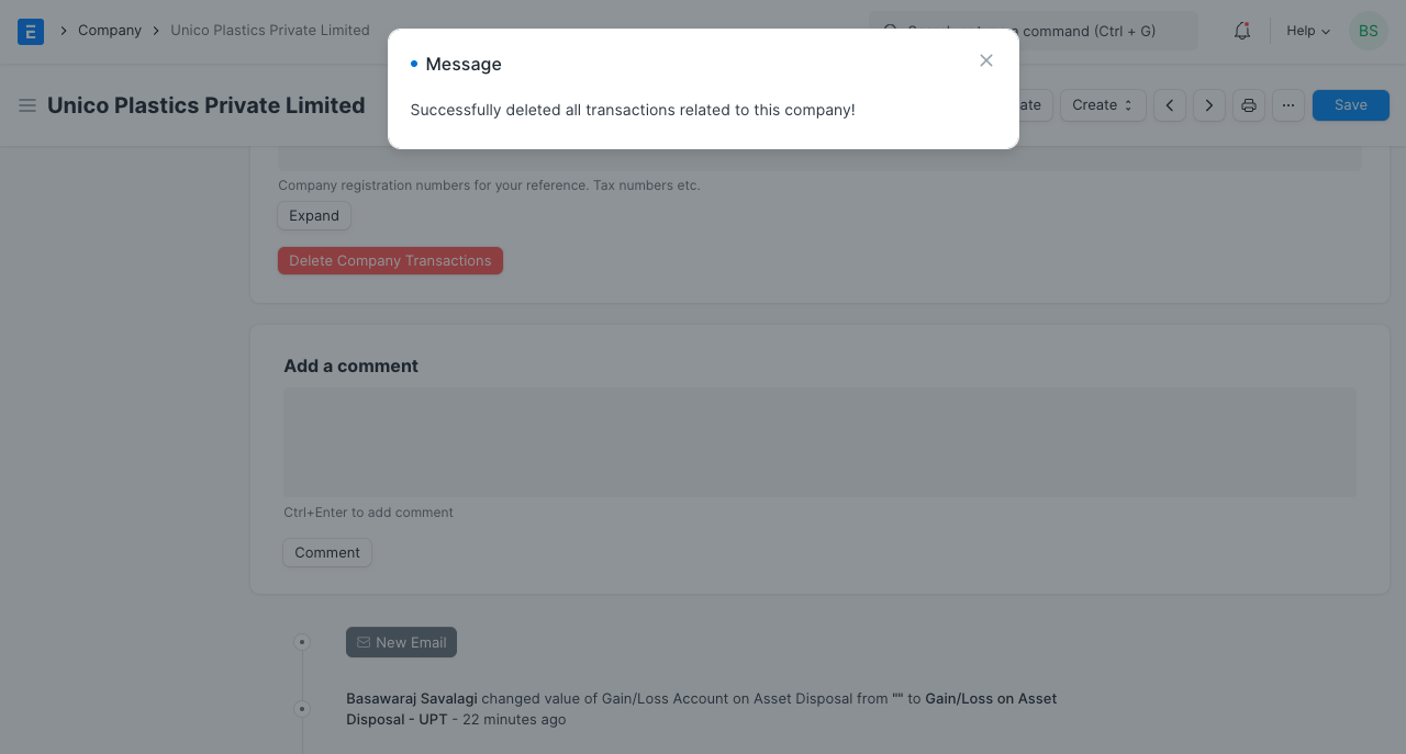 2.9 Xóa tất cả các giao dịch của công ty
